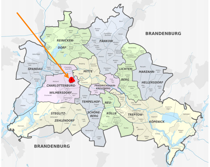 Public transport. U1 Uhlandstraße and S-Bahn Savignyplatz are within 5 minutes walk. Direct connection from Tegel airport with bus 109 direction Zoologischer Garten, stop Bleibtreustraße (about 25 minutes).